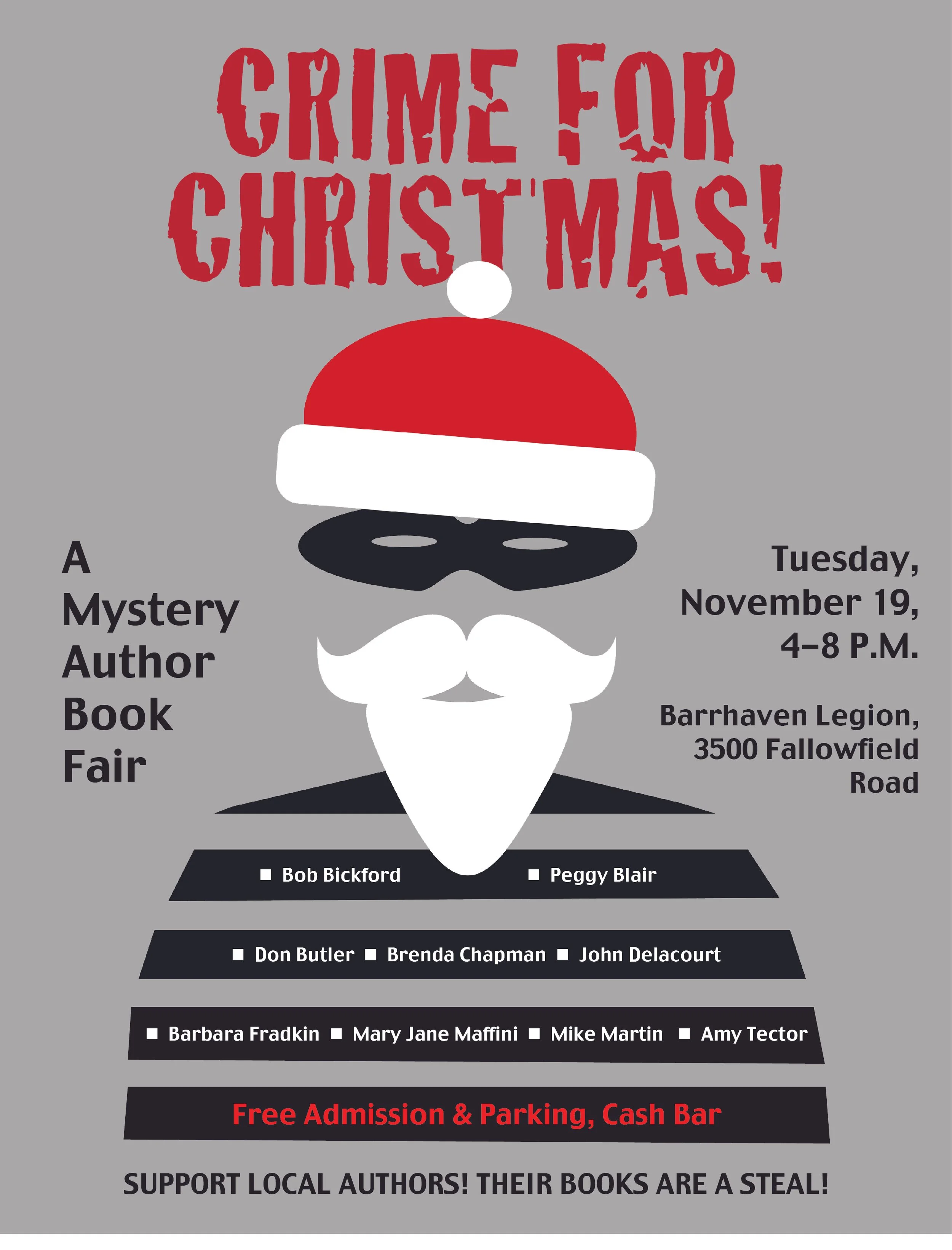 NOVEMBER 19, 2024 Nine of Ottawa’s best crime writers are convening on the Barrhaven Legion at 3500 Fallowfield Road to sign books, talk to readers and help everyone put a little murder under the tree